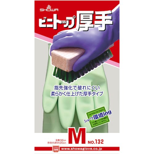 【CAINZ-DASH】ショーワグローブ 塩化ビニール手袋 No132ビニトップ厚手 グリーン Mサイズ NO132-MG【別送品】