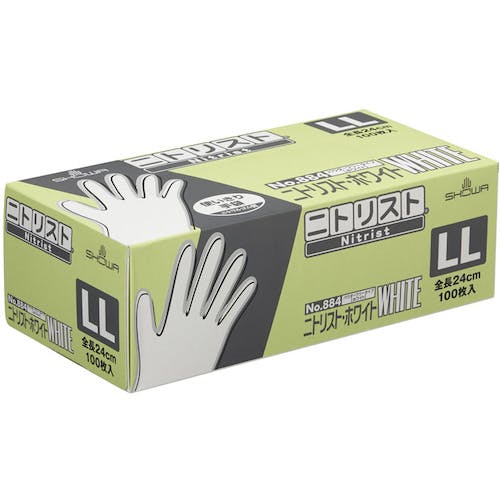 【CAINZ-DASH】ショーワグローブ ニトリルゴム使い捨て手袋 No884 ニトリスト・ホワイト 100枚入 LLサイズ NO884-LL【別送品】