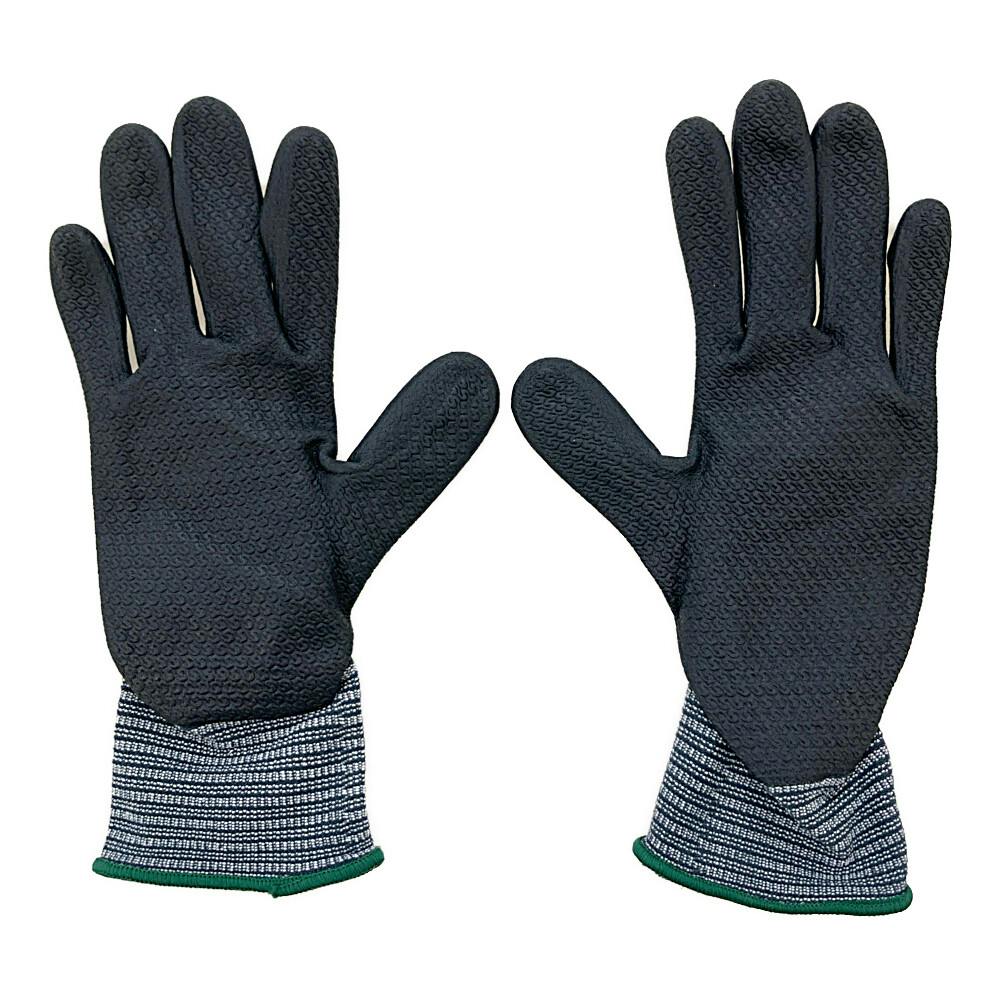 マイクロファイバーを採用することで肌への密着性を高め、手袋内面のスベリ止め効果を高めています。発泡樹脂コーティングにより、従来のニトリルゴムコーティング手袋よりも手のひら部分に通気性を持たせ、ムレを軽減しました。