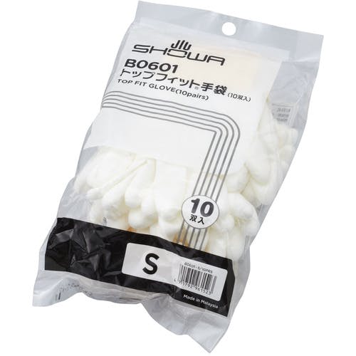 【CAINZ-DASH】ショーワグローブ まとめ買い簡易包装トップフィット手袋10双入 B0601 ホワイト Sサイズ B0601-S10P【別送品】
