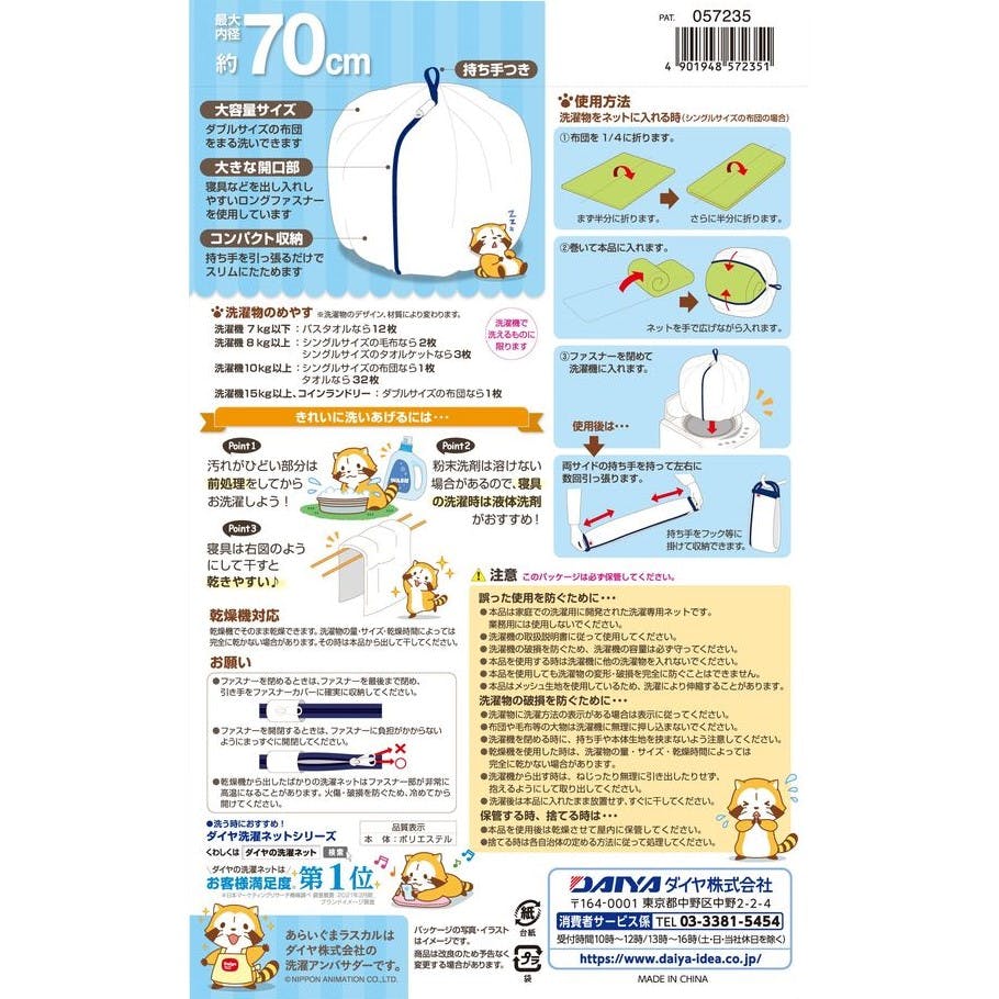 最大内径約70cmで、シングルサイズの掛け布団からタオルや衣類まで容量に合わせてネットがふくらみます。