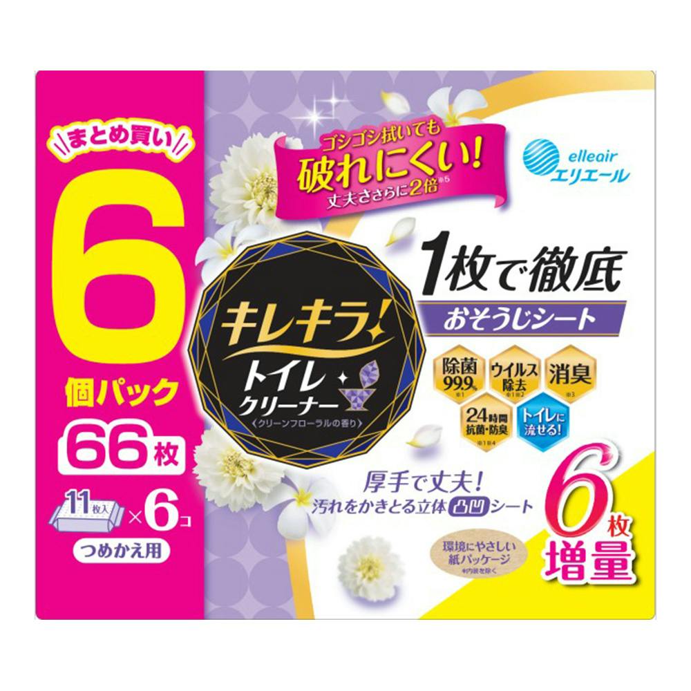 • エリエール キレキラ!トイレクリーナー 1枚で徹底 おそうじシート クリーンフローラル 詰替 66枚