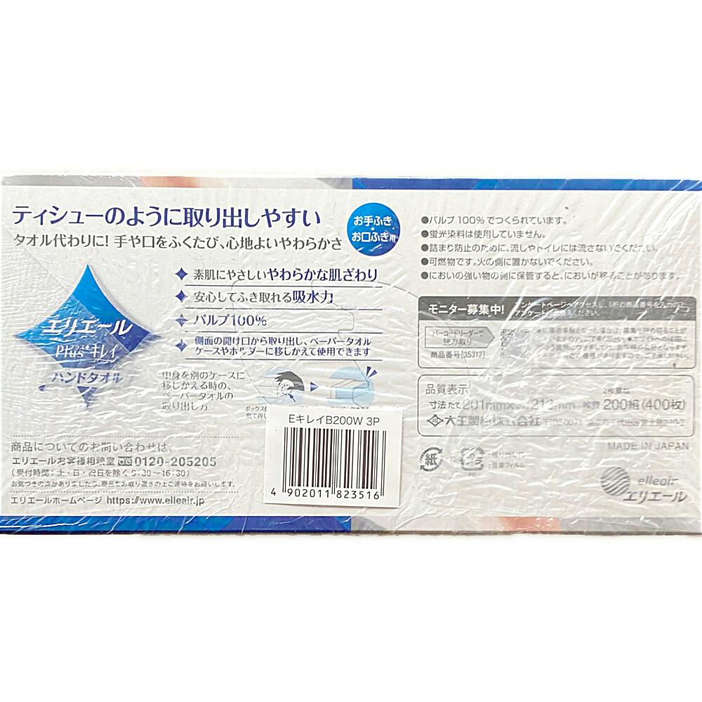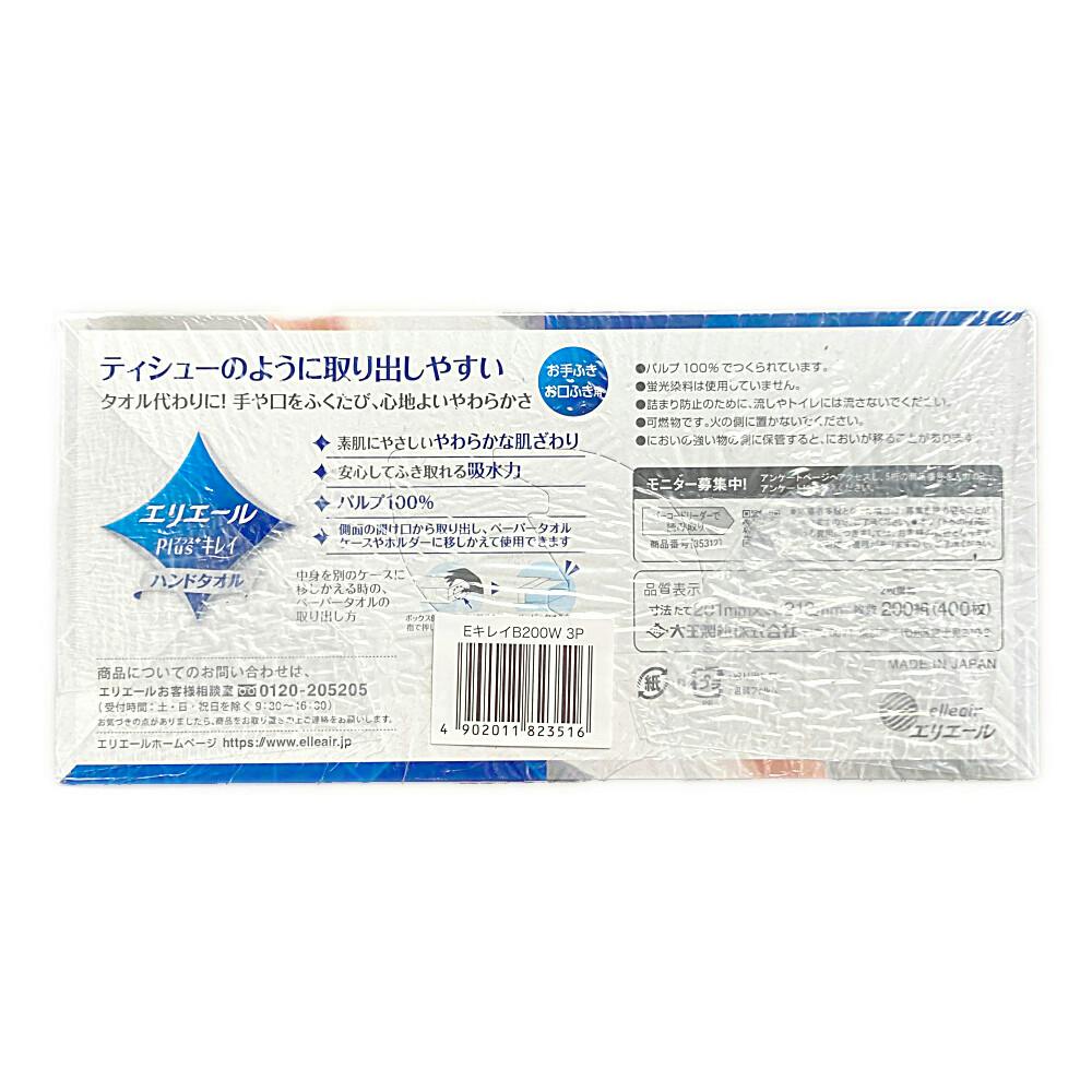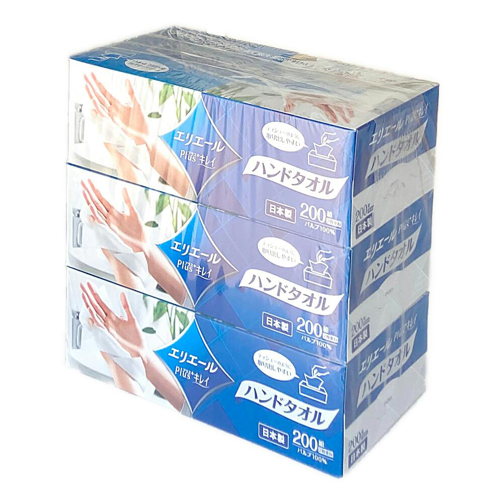 エリエール Plus+キレイ ハンドタオル ボックス 200組×3個パック