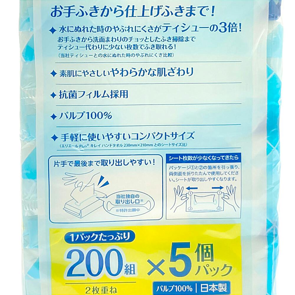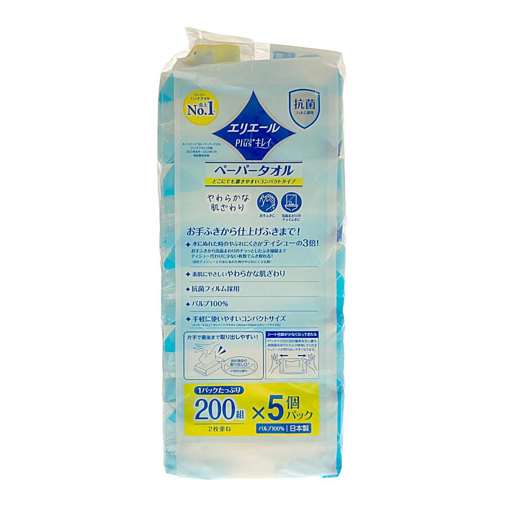 エリエール Plus+キレイ ペーパータオル コンパクトタイプ 200組×5個パック