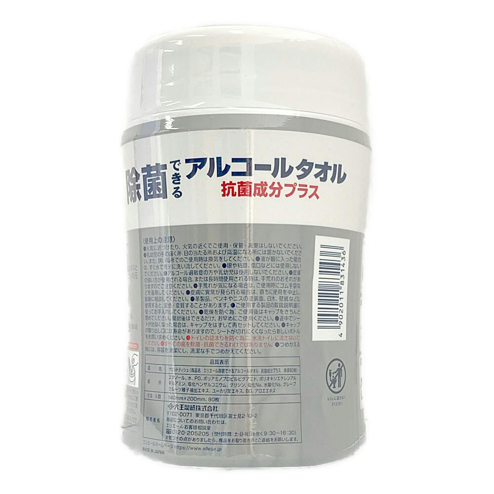 • 大王製紙 エリエール 除菌できるアルコールタオル 抗菌成分プラス 本体 80枚