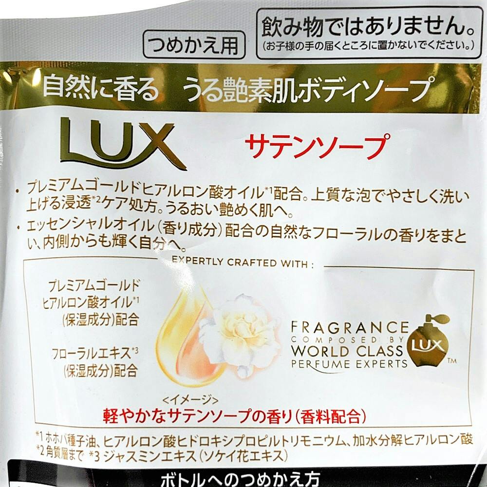 洗ってうるおう、新・ラックスボディソープ。プレミアムゴールドヒアルロン酸オイル(保湿成分)配合。
