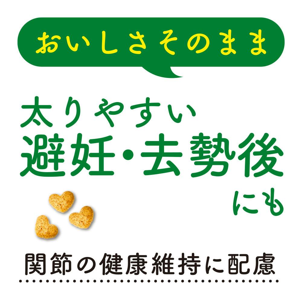 おいしさそのまま必要なたんぱく質量は維持し、脂肪分約50%カット。避妊・去勢後にもおすすめ。
