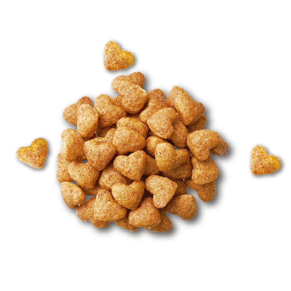 消化しやすいサクサク粒でおなかの健康。食物繊維強化(成犬用比)で健康的な便の維持に配慮。