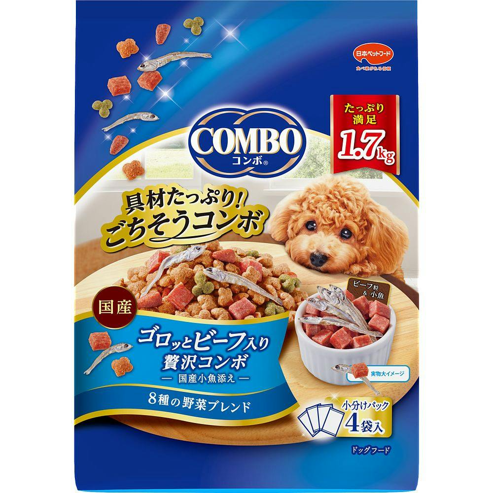 日本ペットフード コンボ ゴロッとビーフ入り 贅沢コンボ 国産小魚添え 小分けパック4袋入 1.7kg