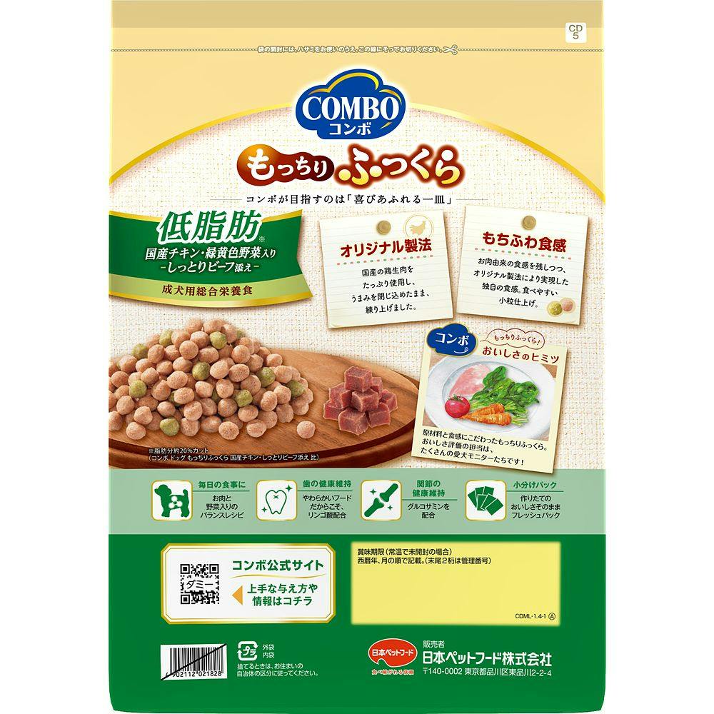 コンボ ドッグ もっちりふっくら 低脂肪国産チキン・緑黄色野菜入り しっとりビーフ添え 1.4kg