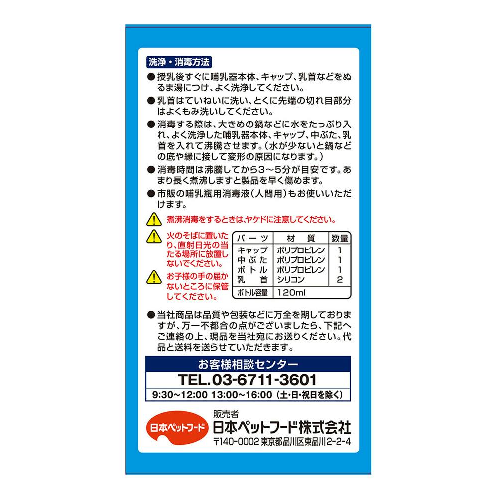 ポリプロピレン製。煮沸消毒して繰り返し使用ができ、衛生的。スペア乳首1個入り。