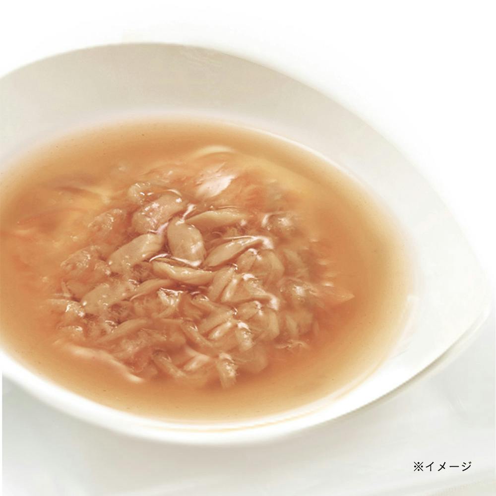 スープ~シニアの健康を考えたこだわりスープ 良質なたんぱく質や魚のピュアオイルを配合。まぐろの白身だけを贅沢に使用した、小さめフレークのスープメニュー。