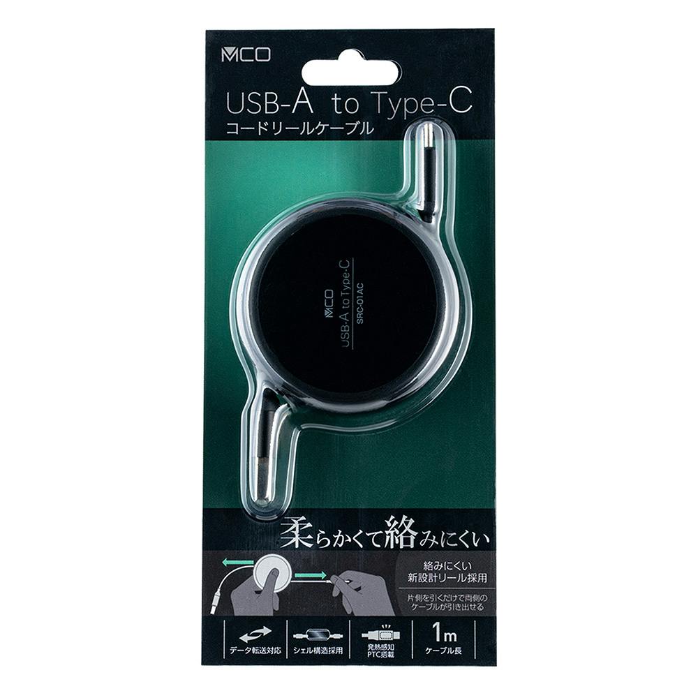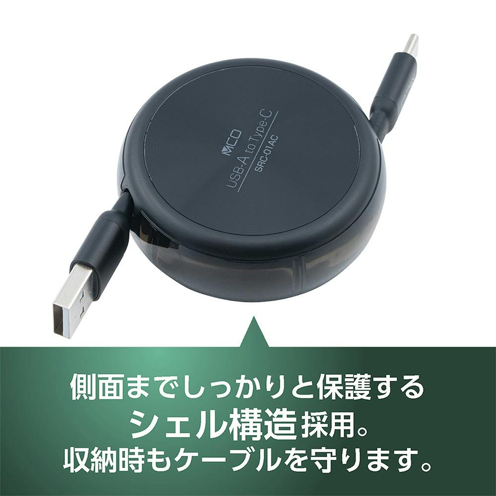 からみにくいコードリールケーブル USB-A to C ブラック SRC-01ACBK
