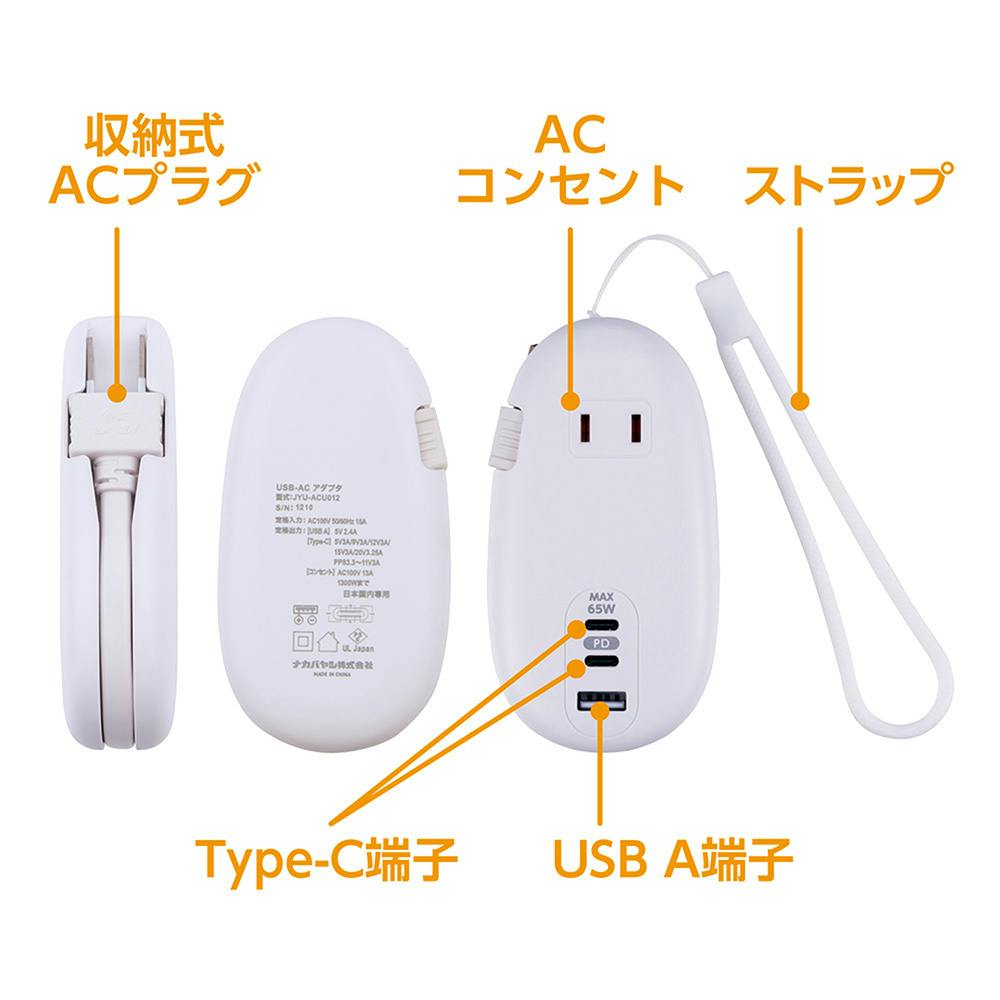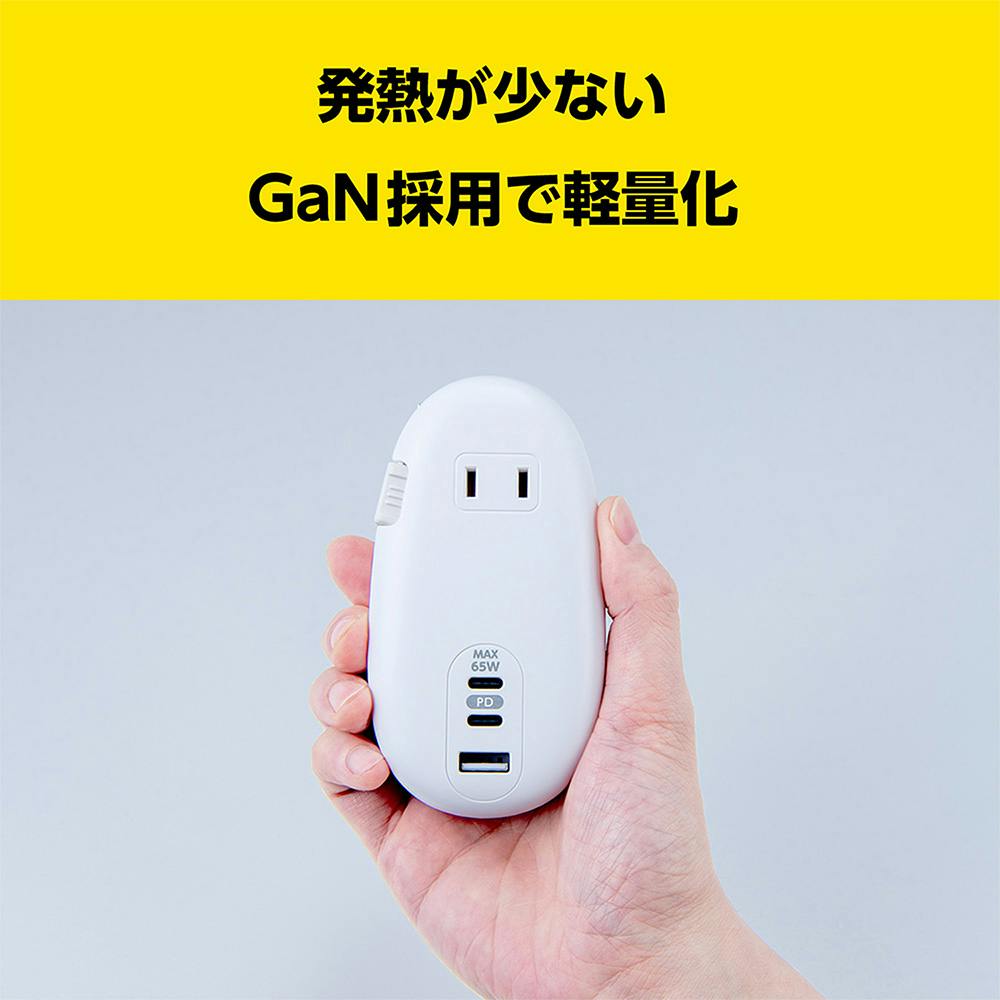 モバイルUSB-ACタップ PD対応 65W ホワイト JYU-ACU012W