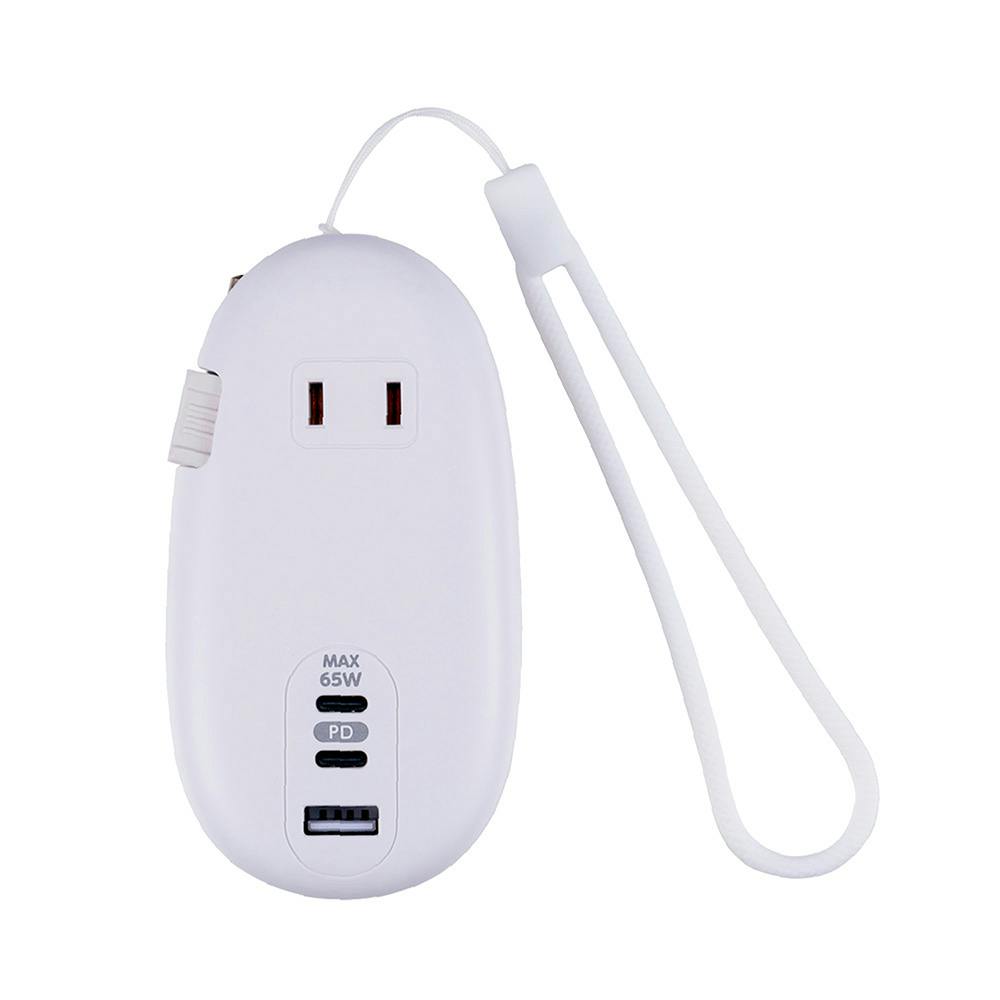 ケーブルが収納出来て持ち運びに便利なモバイルUSB-ACタップ。PD65W対応でパソコンからスマホまで幅広い充電が可能です。電気製品も使えるコンセント付きです。(最大1200Wまで)本体にケーブルが収納できて出張や旅行など外出先での使用に最適です。