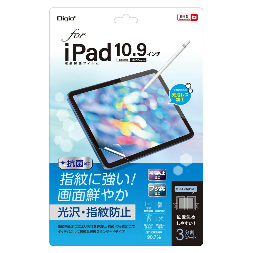 iPad 10.9インチ 第10世代(2022モデル)用フィルム 防指紋・高光沢