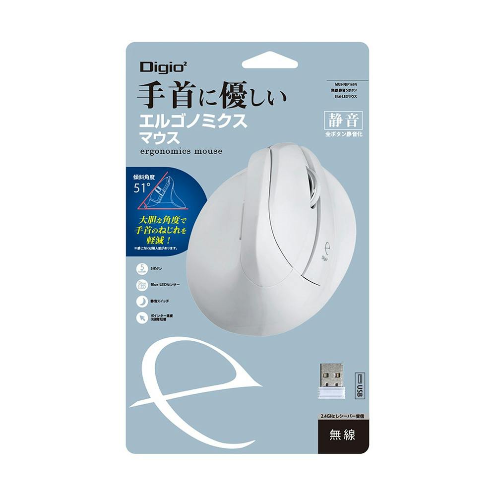 無線 静音5ボタン BlueLEDエルゴノミクスマウス ホワイト MUS-RKF169N