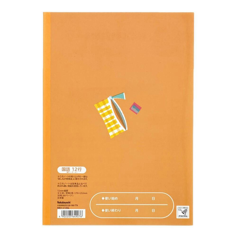 ナカバヤシ こどもがよろこぶかるい学習帳 セミB5 こくご12行リーダー入り