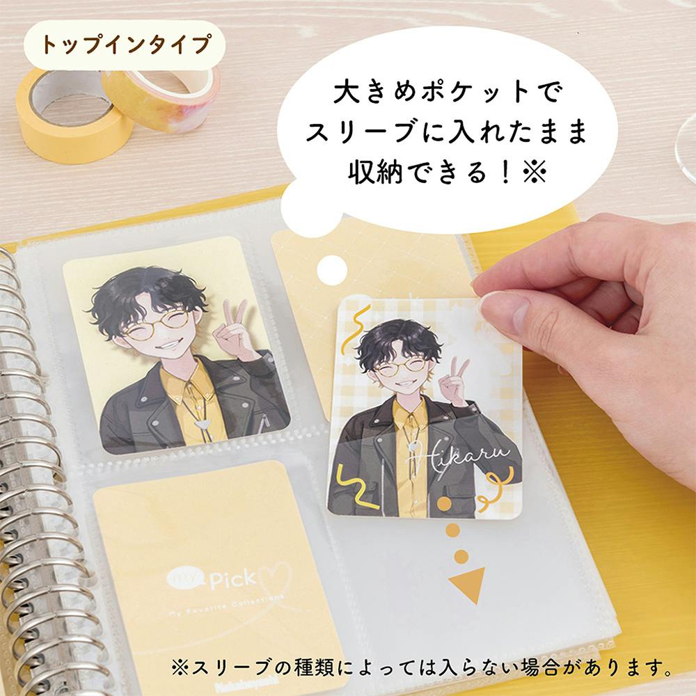 “好き”をあつめよう。クリア表紙で、表紙を自分好みにカスタマイズすることができます。スリーブに入れたまま収納できる大きめポケット仕様。推しのメンバーカラーや、キャラクターのテーマカラーにあわせて選べるカラフルな6色展開。