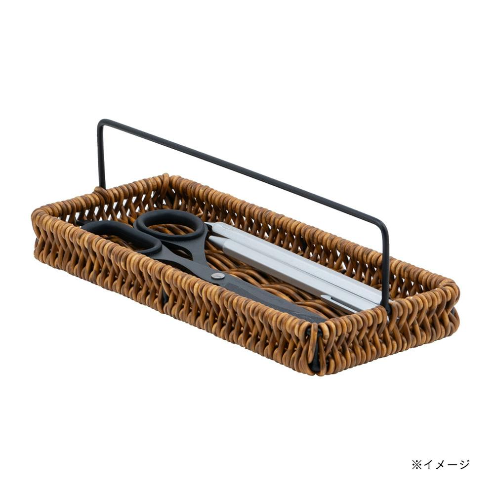 ナチュラルな雰囲気にピッタリのラタン風収納。今までのオフィス収納にはなかったラタン風の収納用品。樹脂製の本体でささくれなどを気にせず長く使用ができます。アイアンのフレームを採用することで、ナチュラルな雰囲気を残しつつ、スクエアな形状を実現。