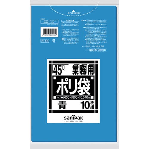 【CAINZ-DASH】日本サニパック ゴミ袋 N-46 Nシリーズ45L厚口青 10枚 N-46-BL【別送品】