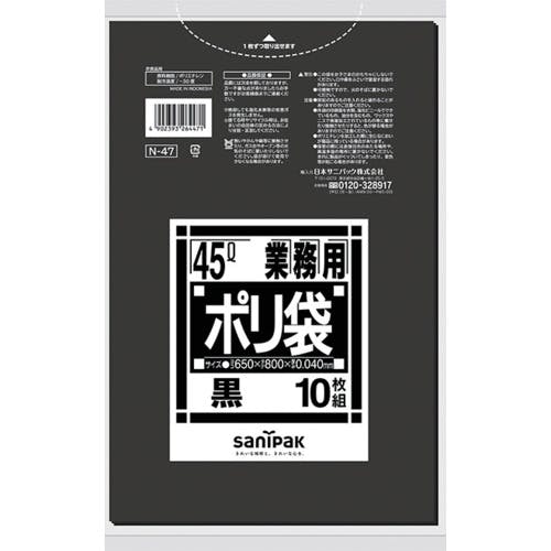 【CAINZ-DASH】日本サニパック ゴミ袋 N-47 Nシリーズ45L厚口黒 10枚 N-47-BK【別送品】