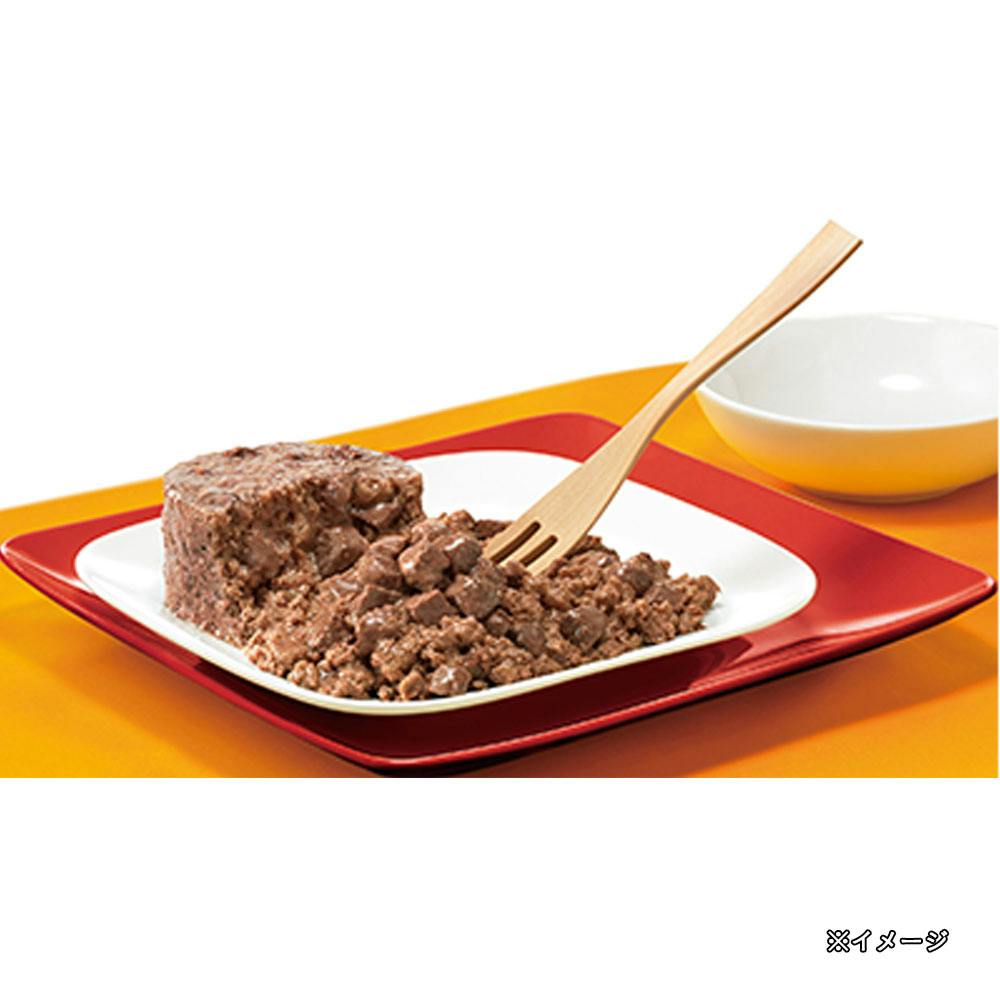 肉類(チキン、ビーフ、家禽、ラム、ポーク等)、植物性タンパク、食物繊維、ビタミン類、ミネラル類、増粘多糖類、着色料(酸化鉄)、EDTA-Ca・Na、発色剤(亜硝酸Na)