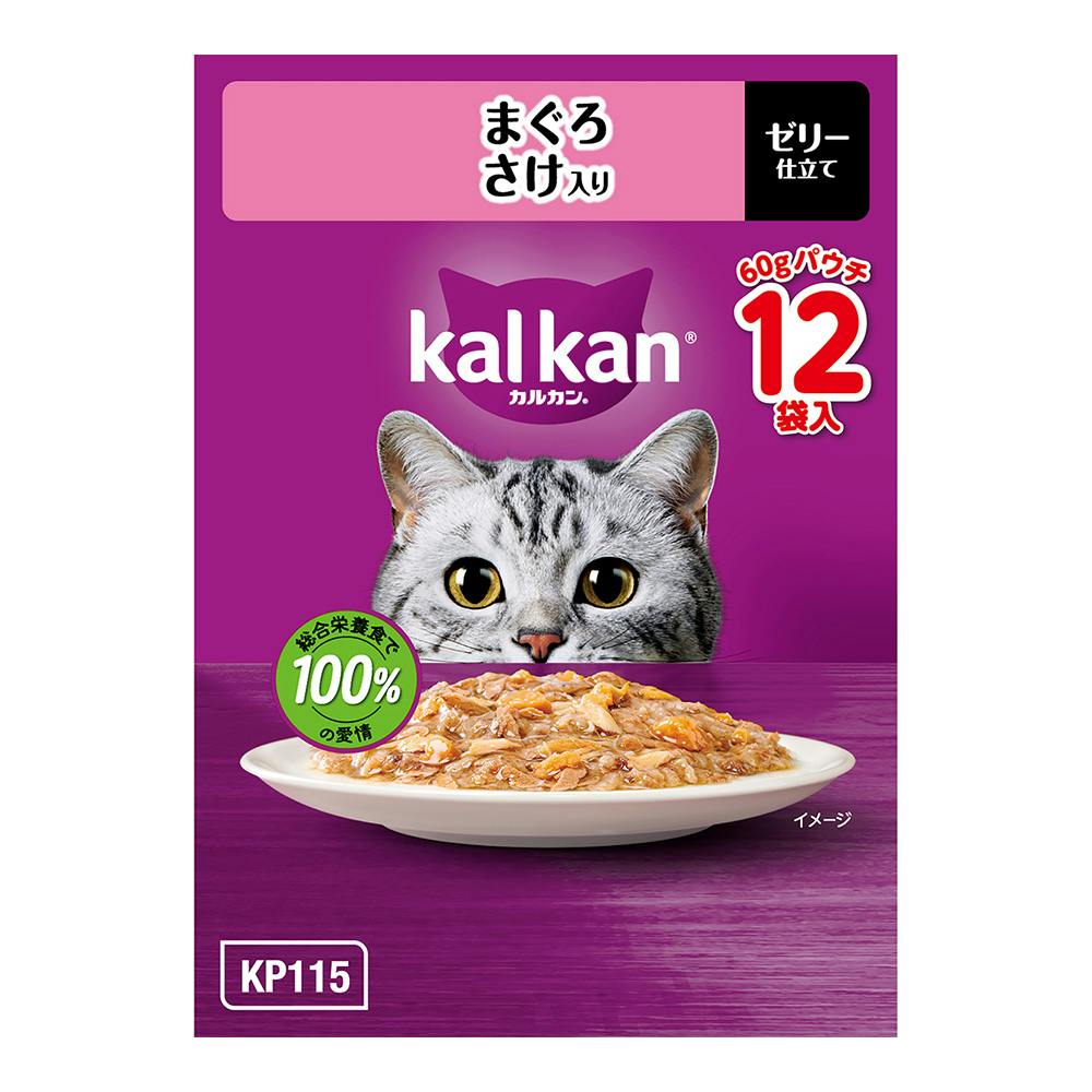 抜群のおいしさに進化!厳選されたまぐろにさけを加えカルカン特製だしで煮込み、ジューシーなゼリー仕立てにしました。1歳以上の猫に必要な栄養素がバランスよく含まれた総合栄養食です。