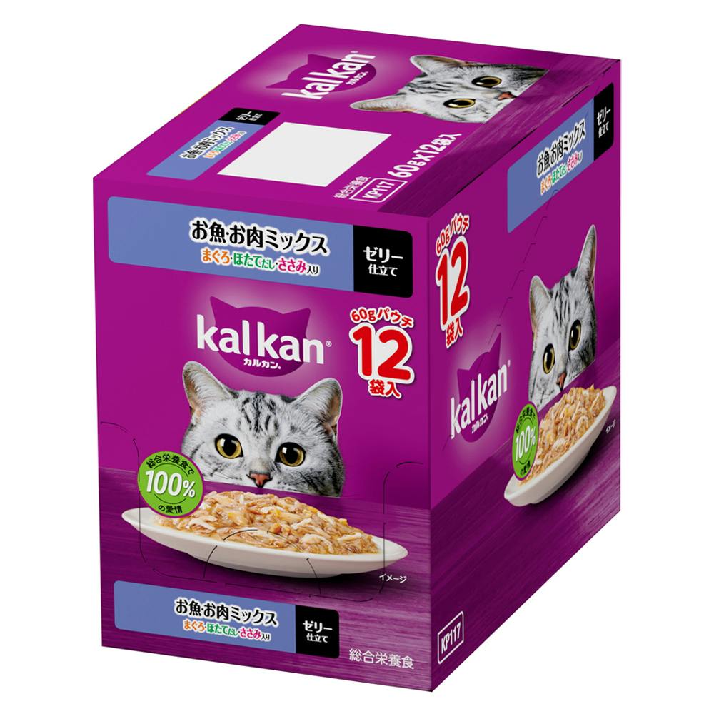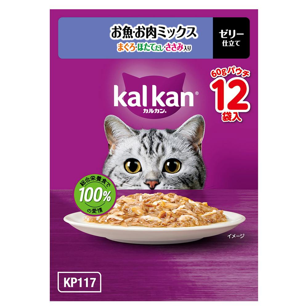 【ケース販売】カルカン パウチ お魚・お肉ミックス まぐろ・ほたてだし・ささみ入り 60g×12個入