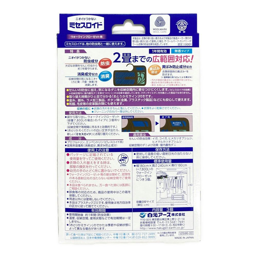 ミセスロイド ウォークインクローゼット用 3個入 1年防虫