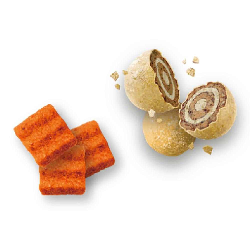 猫様に、おいしいおやつを。おいしさパウダーをキャッチしやすい波型の粒と、うまみ成分を重ねたグルメボールがフレッシュパック入り。3gの小分け包装で与えやすく、猫様との距離を縮めるための、コミュニケーションフード。