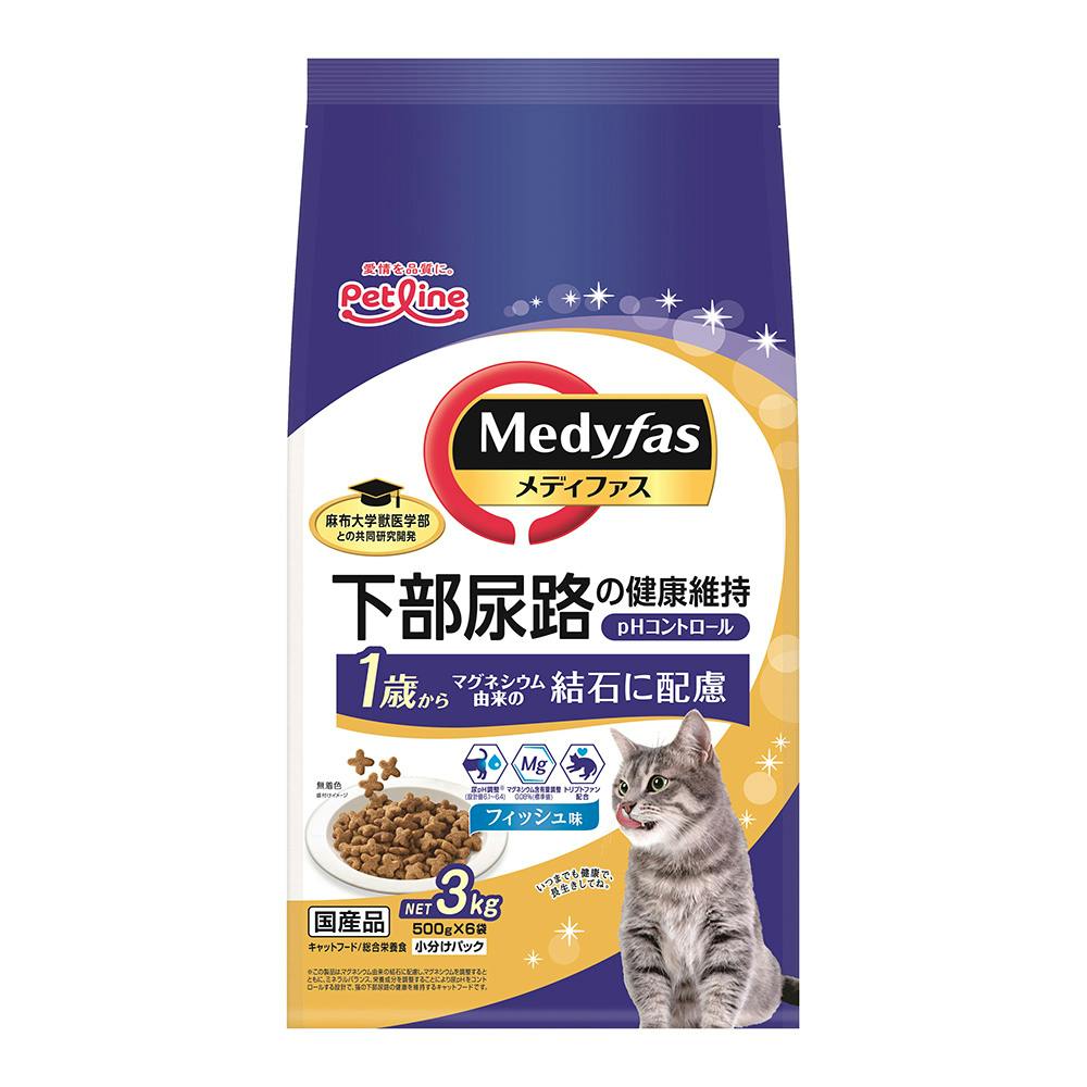 麻布大学獣医学部との共同研究開発したメディファスの基本は、下部尿路の健康ケア。「り乳」から「シニア」まで年齢別のバリエーションに加えて、生活習慣に応じた幅広い機能も充実し、愛猫の「気になる」を網羅。生涯に渡り愛猫の健康維持をサポートします。