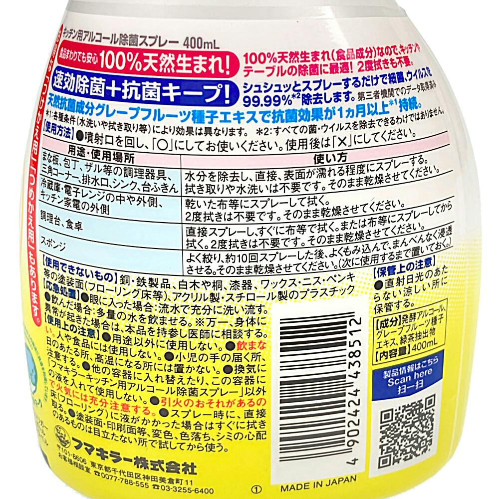 フマキラー キッチン用アルコール除菌スプレー 本体 400ml