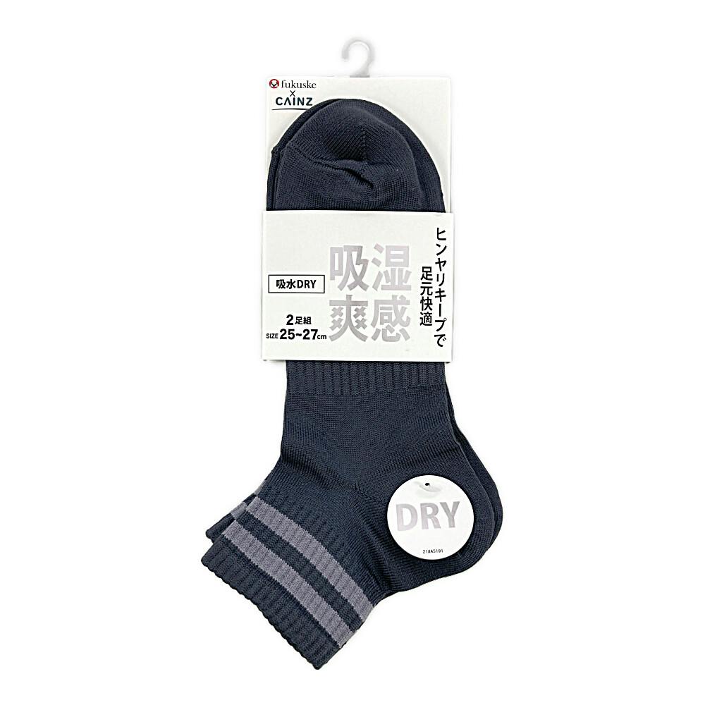紳士 吸湿爽感 ラインショート チャコール 25cm-27cm 2足組