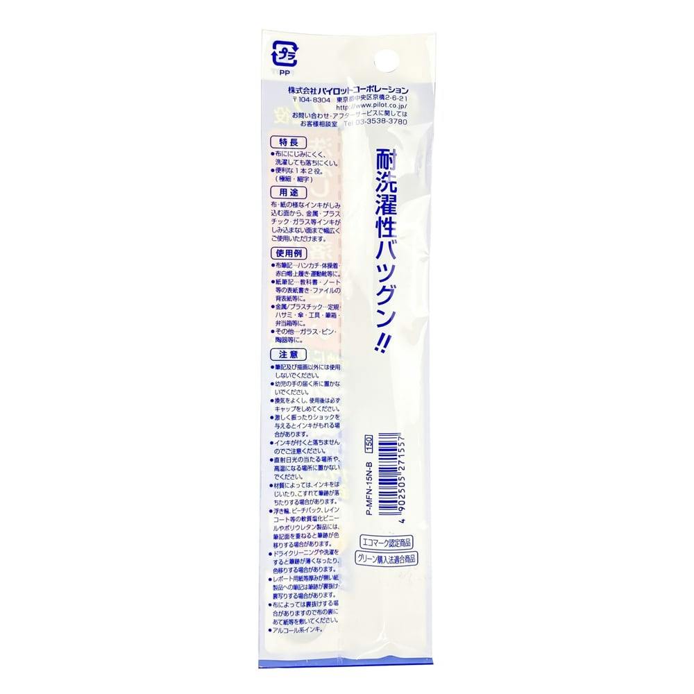 ●布ににじみにくく、洗濯しても落ちにくい。●便利な1本2役。(極細・細字)●布・紙の様なインキがしみ込む面から、金属・プラスチック・ガラス等インキがしみ込まない面まで幅広くご使用いただけます。