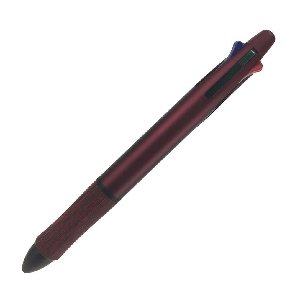 木製グリップとブラックパーツによる上質感と機能が融合した多機能ボールペン