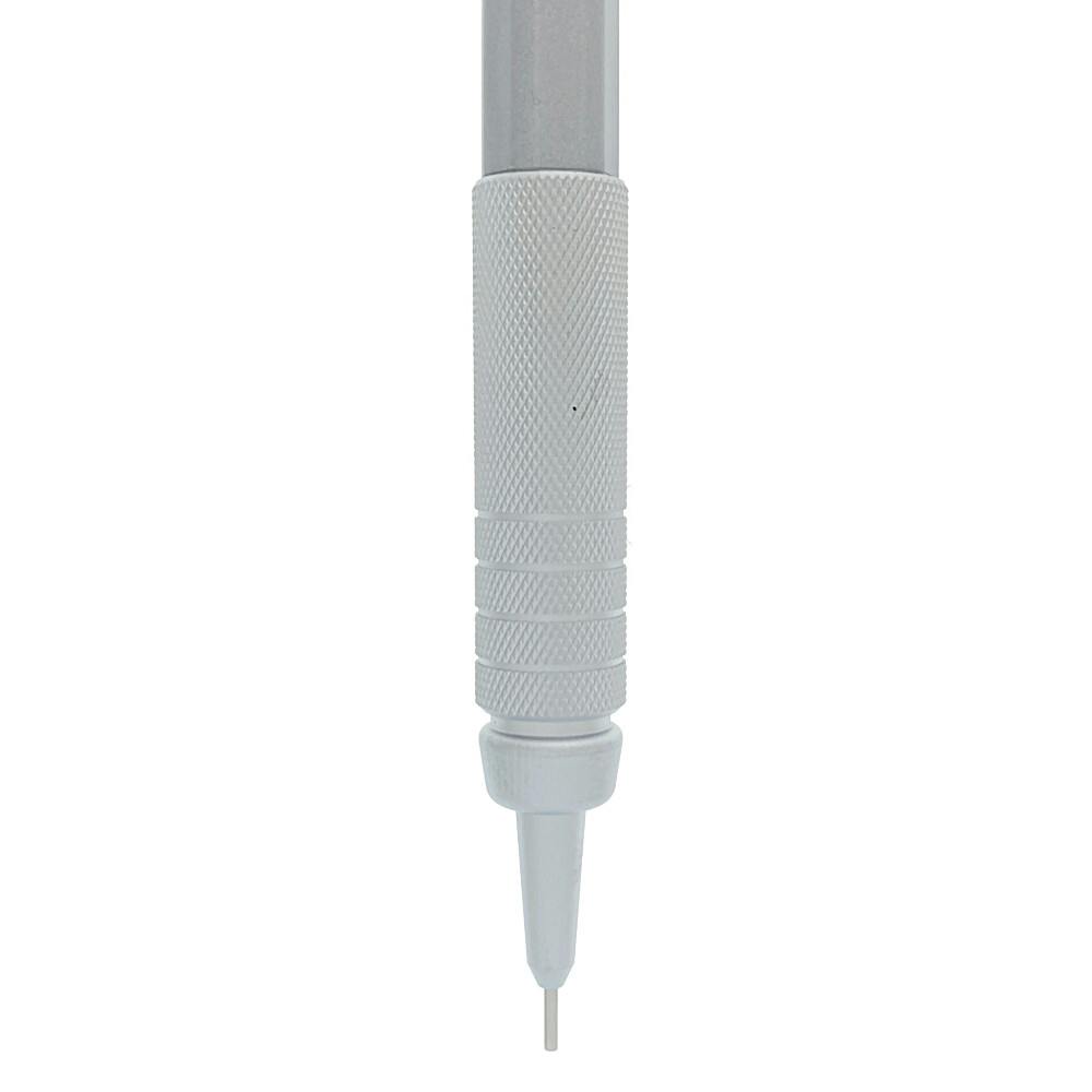 ●安定した筆記を実現する低重心設計 ●ローレット加工を施した滑り止めグリップ付 ●硬度の使い分けができる表示窓付 ●筆記時に文字や線を確認しやすい細身のペン先