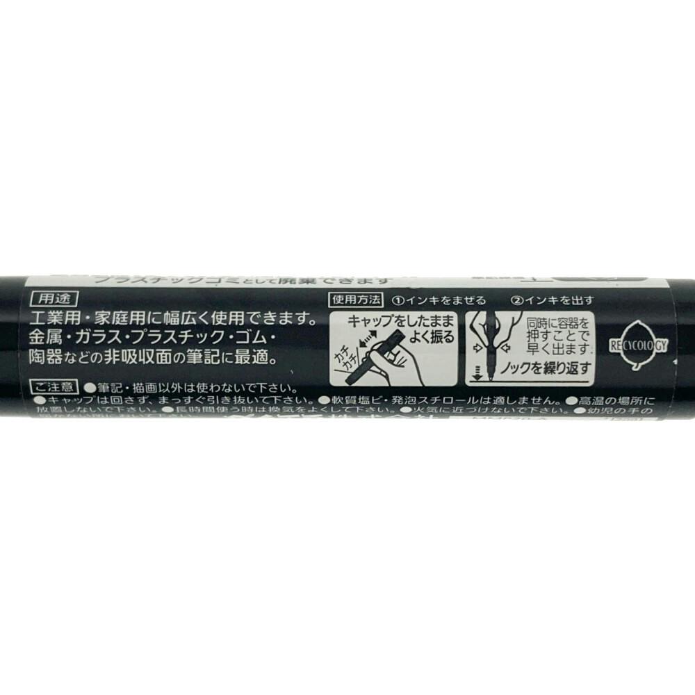 金属部品を使わず、プラスチックのみでできた油性ペイントマーカー。金属、ガラス、ゴム、陶器などにも塗料のように濃く鮮やかな発色。不透明、耐水性。