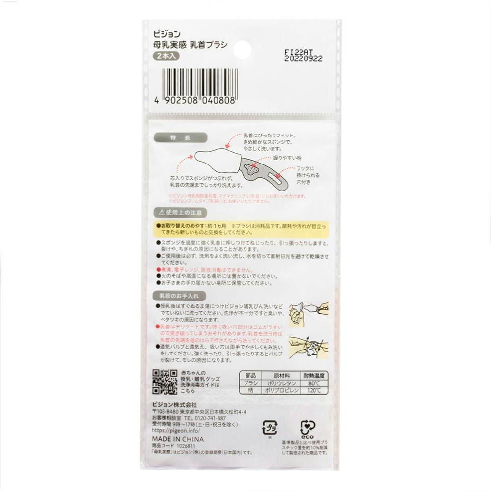 母乳実感乳首にぴったり、内側をしっかり洗えます。※ピジョン母乳相談室乳首、マグマグニップル(乳首)にもお使いいただけます。※ピジョンスリムタイプ乳首には、お使いいただけません。
