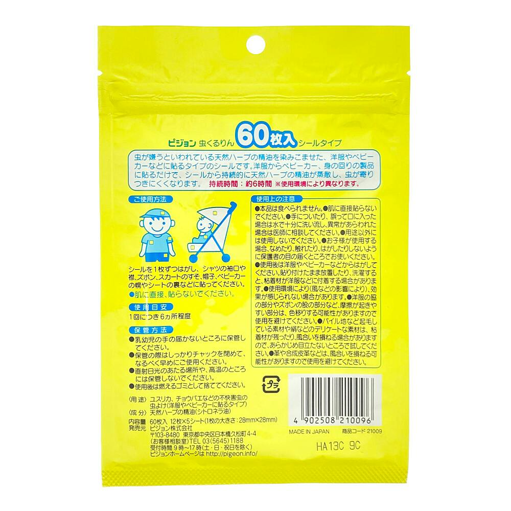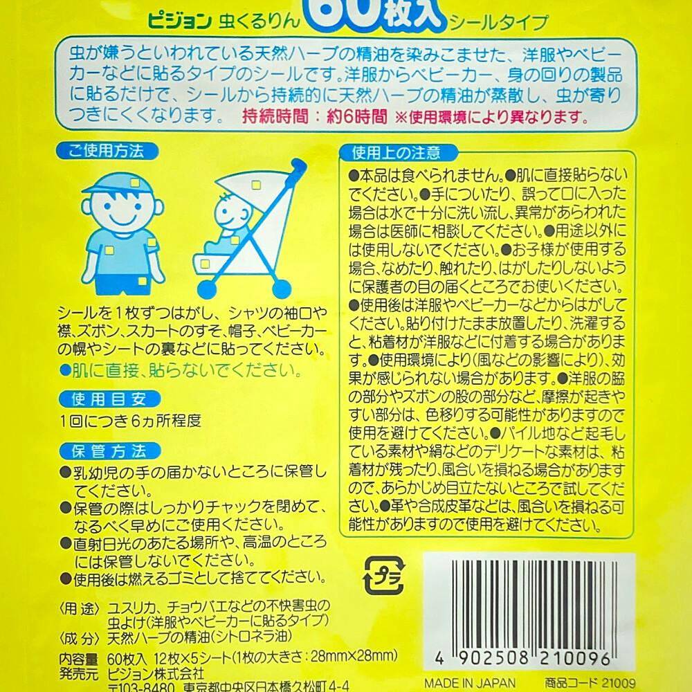 ●虫が嫌うといわれている天然ハーブの精油を染みこませた、洋服やベビーカーなどに貼るタイプのシールです ●洋服からベビーカー、身の回りの製品に貼るだけで、シールから持続的に天然ハーブの精油が蒸散し、虫が寄りつきにくくなります