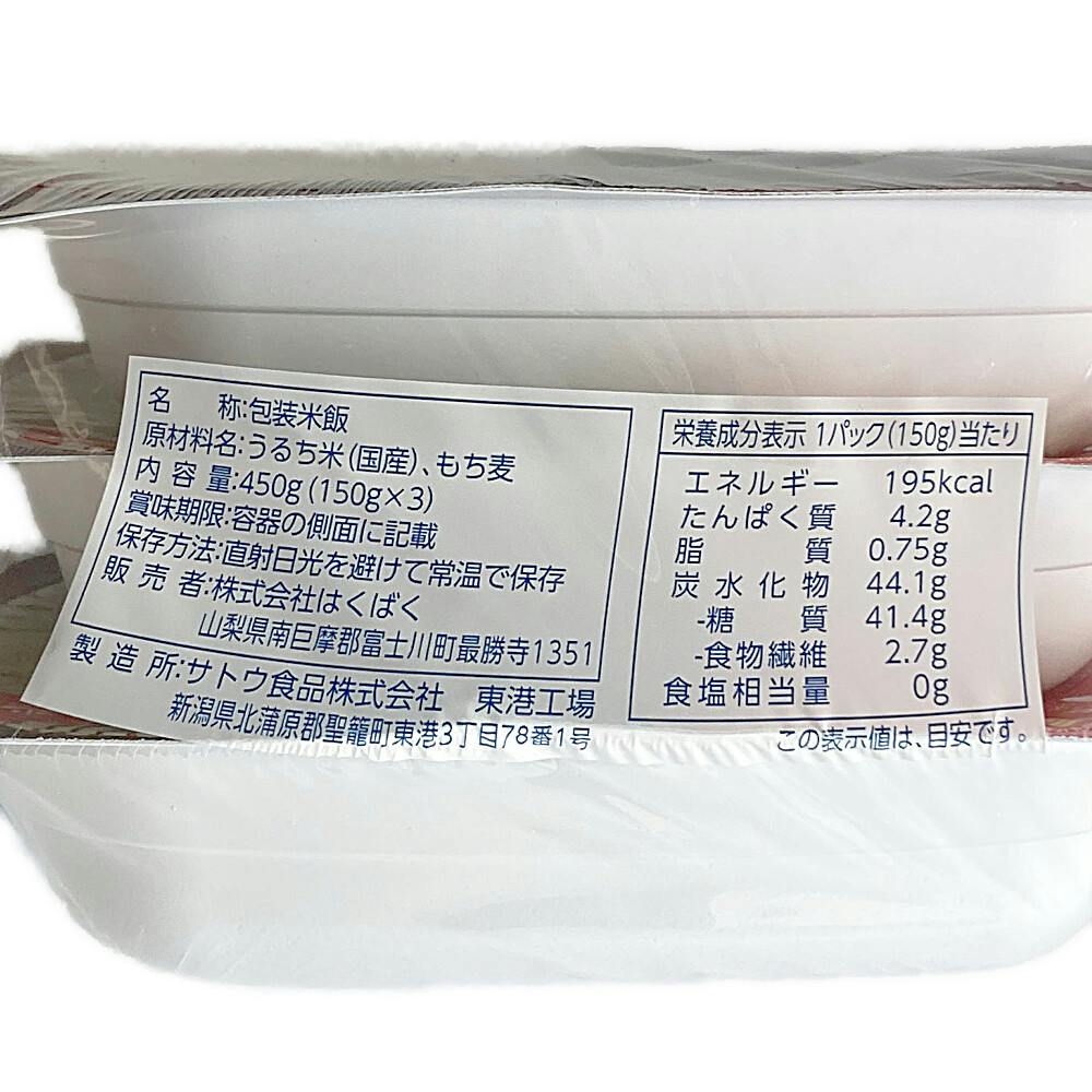 ●もち米30%配合国産米100%使用(うるち米)●1パック(150g)で食物繊維2.7g●195kcal●3個パック●ぷちぷち食感