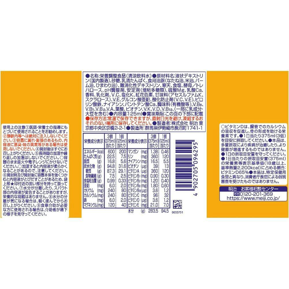 1個(125mL)当たり/エネルギー:200kcal、たんぱく質:7.5g、脂質:5.6g、炭水化物:31.6g、糖質:29.1g、食物繊維:2.5g、食塩相当量:0.33g 等