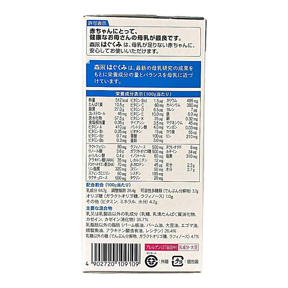 乳糖、調整脂肪(パーム核油、パーム油、大豆油、エゴマ油)、ホエイパウダー(乳清たんぱく質)、脱脂粉乳、でんぷん分解物、乳清たんぱく質消化物、カゼイン、バターミルクパウダー、乳糖分解液(ラクチュロース)、ガラクトオリゴ糖液糖、ラフィノース、精製魚油、他