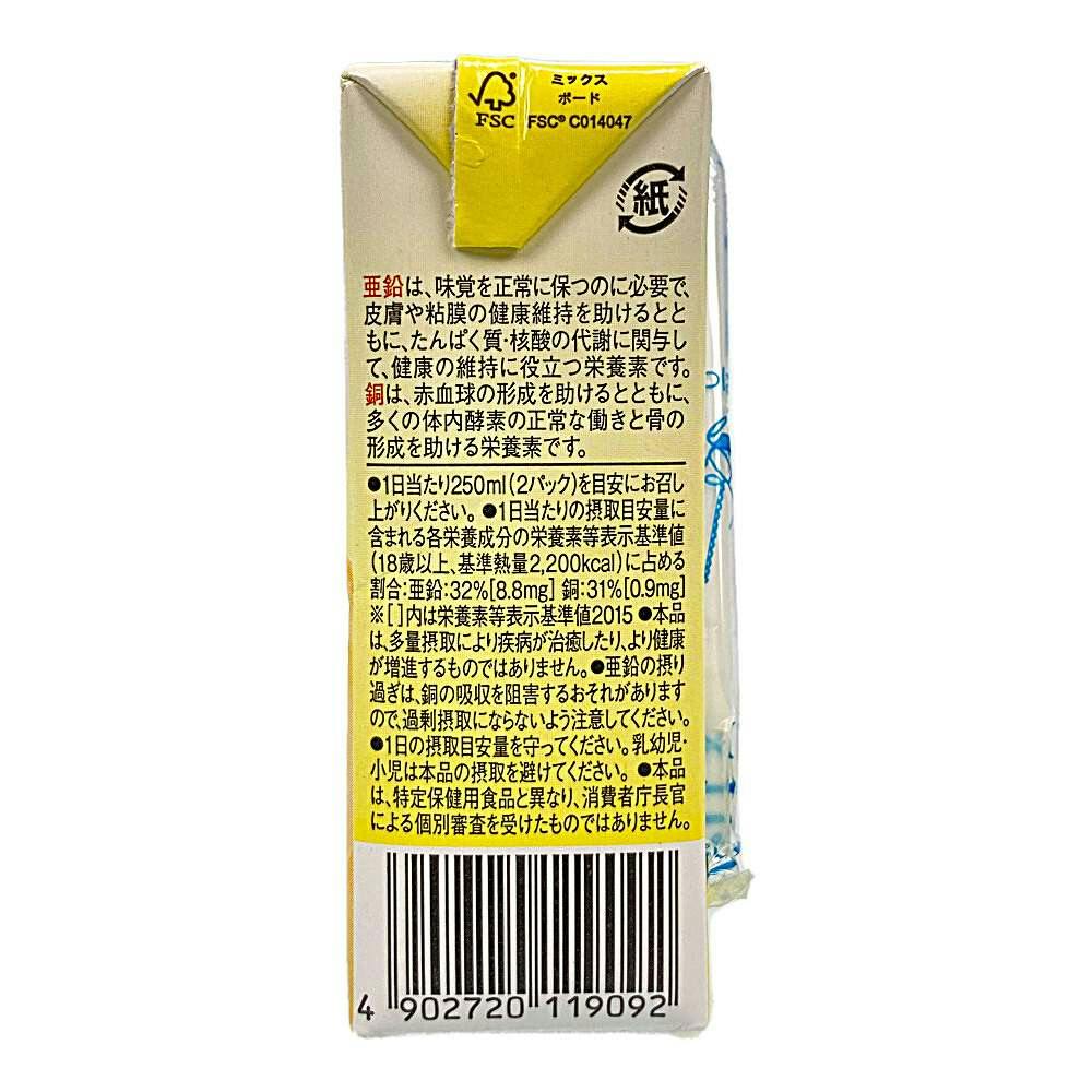 糖質 26.8g、食物繊維 2.5g、カルシウム 138mg、亜鉛 1.4mg、銅 0.14mg、ビタミンD 2.4μg、水分 94g、シールド乳酸菌100億個配合