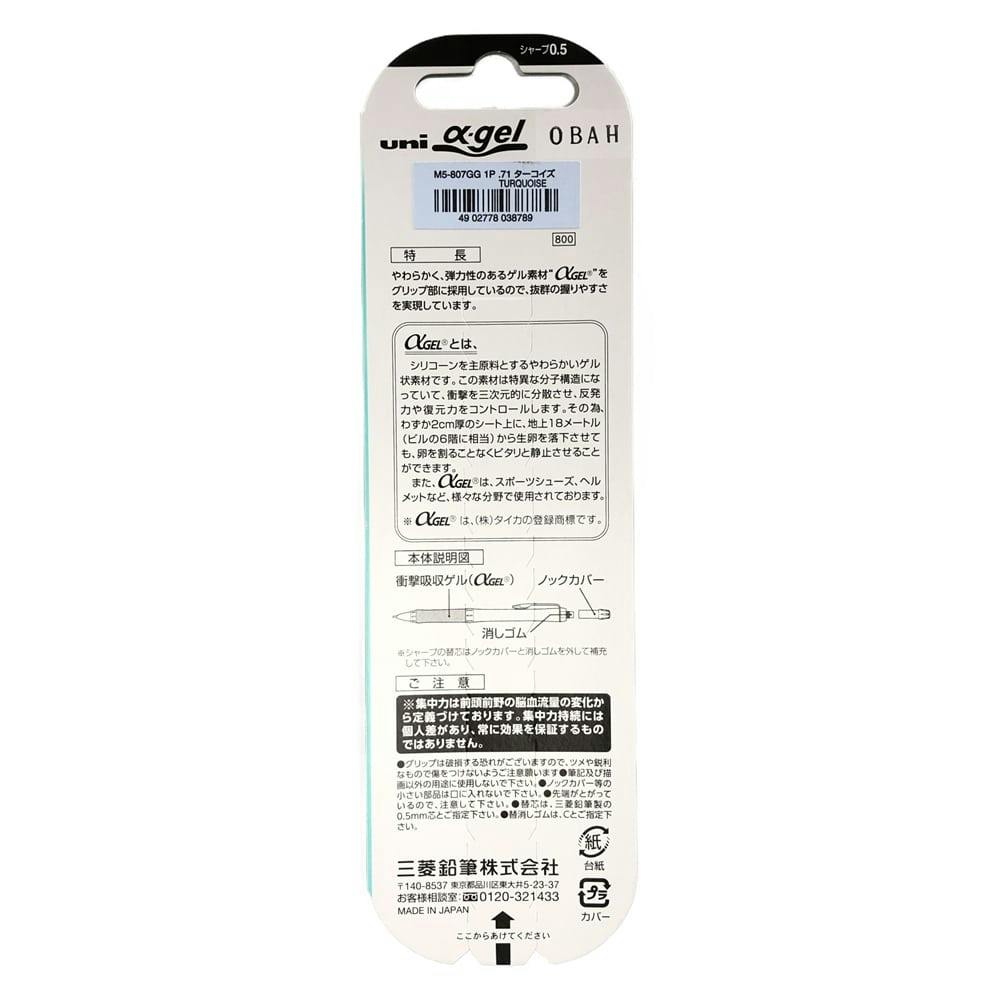 三菱鉛筆 シャープペンシル uni αゲル スリムタイプ やわらかめ 0.5mm ターコイズ