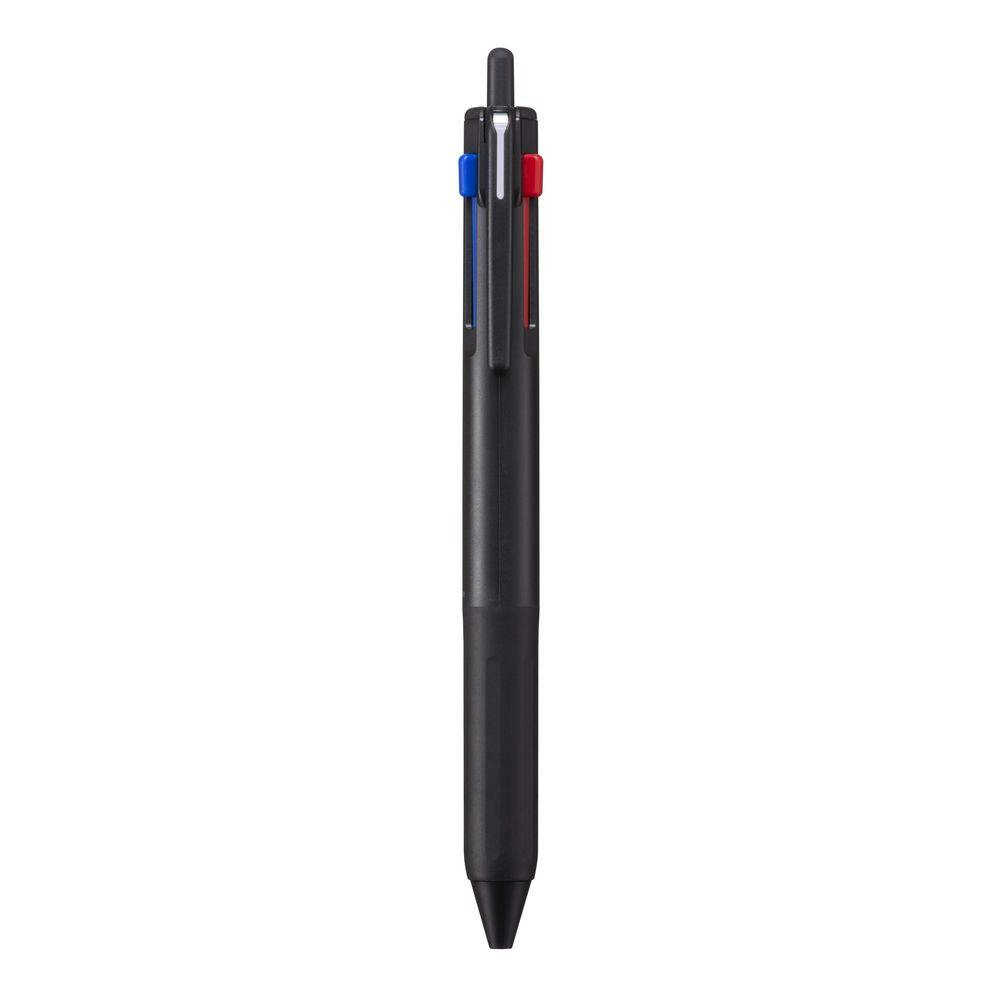 迷わず黒が使える、黒が使いやすい3色ボールペン。減プラ(樹脂量30%DOWN)リフィル搭載。金属補強クリップ。黒インク増量70%UP
