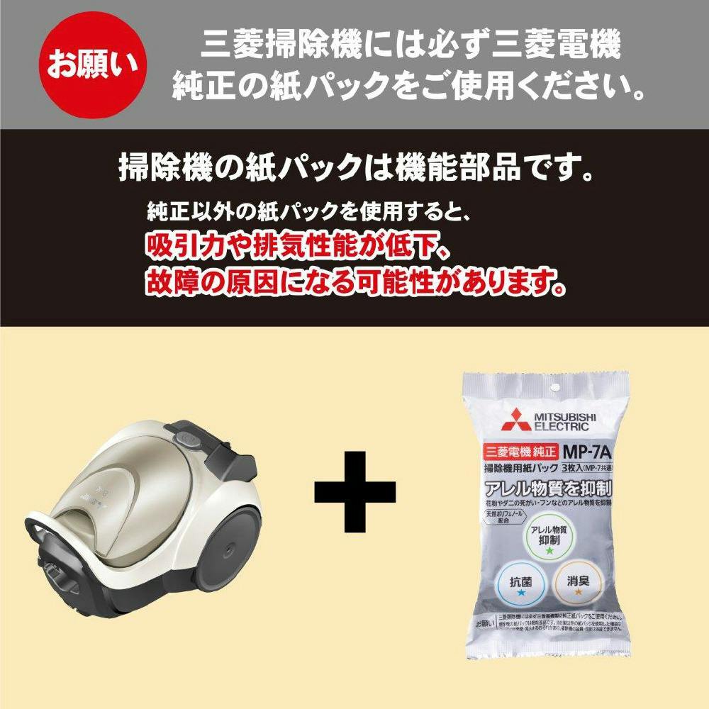 三菱電機 アレルパンチ抗菌消臭クリーン 掃除機用紙パック 3枚入 MP-7A
