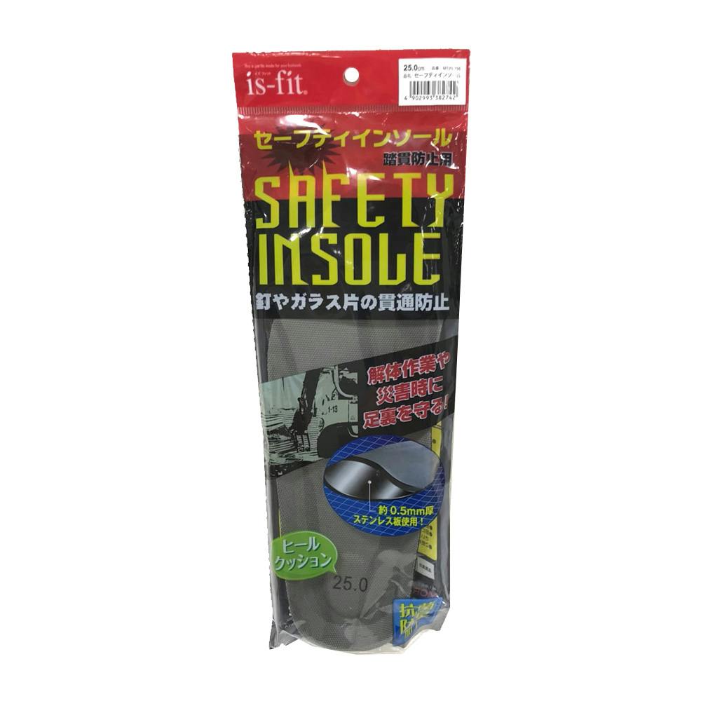 約0.5mm厚のステンレス板と合成樹脂を一体化したインソール、靴底からの釘やガラス片などの貫通を防止します。