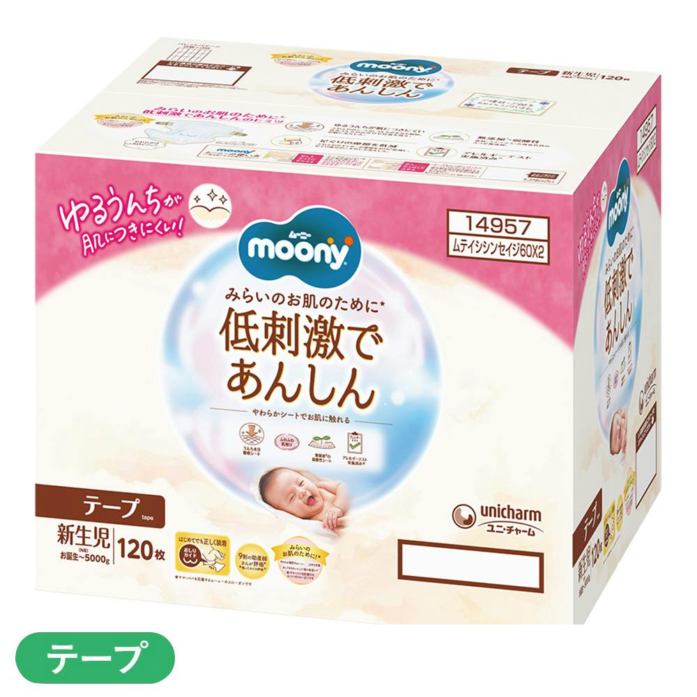 【ケース販売】ムーニー 低刺激であんしん テープタイプ 新生児(お誕生~5000g) 60枚×2