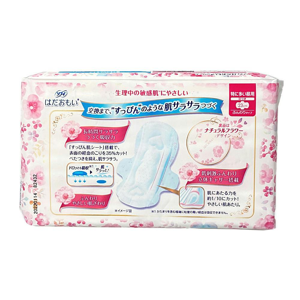 ●ソフィはだおもいは、長時間吸収力が持続して、交換まですっぴんのような肌のサラサラ感がつづくから、肌にやさしいです。●低刺激ふんわり立体ギャザー搭載